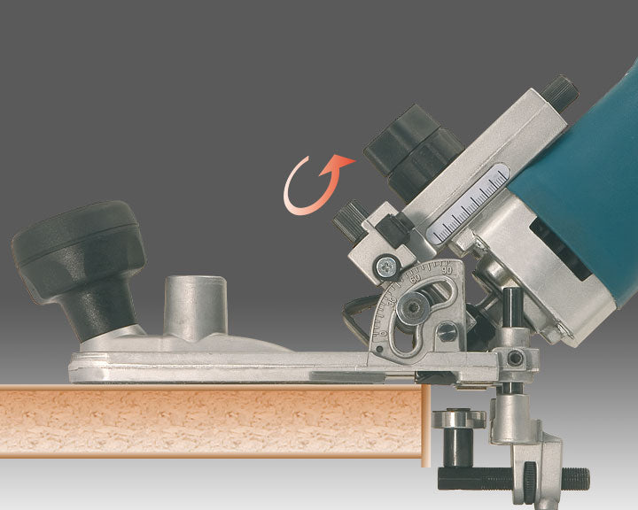 Trimming with the straight bit The tiltable motor body permits the trimming of straight edges with the cylindrical bit as well as the excess surface. Excess panel is trimmed with the motor body in the vertical position, and edges with the motor body inclined to 91.5º, i.e. at 1.5º below the board surface, thereby avoiding damage.